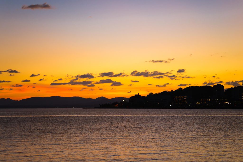 宍道湖の夕陽を見に、ホテル前の公園へ